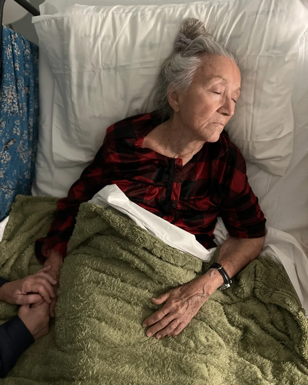 My sister holds my beautiful mother's hand during her brief hospice. Comfort in these last days came in the form of touch, not words. My mother loved the sun and would always turn towards the light.