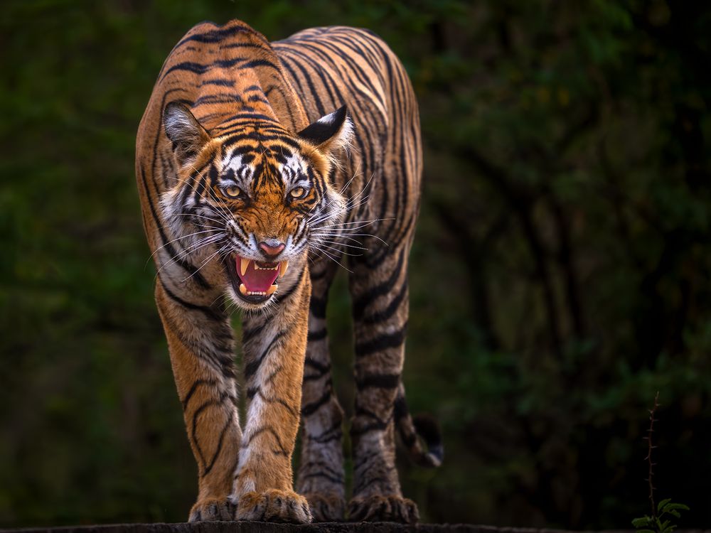 In the final minutes of an afternoon safari in Ranthambhore National Park, India, as we neared the park’s exit, fortune struck. A wild Bengal tiger suddenly leapt onto a roadside stone wall just meters ahead, pausing mid-stride with a fierce expression that captured both her majesty and wild instinct. With barely a moment to react, I raised my camera and pressed the shutter. Captured in May 2025, this fleeting encounter was not planned—but unforgettable.
