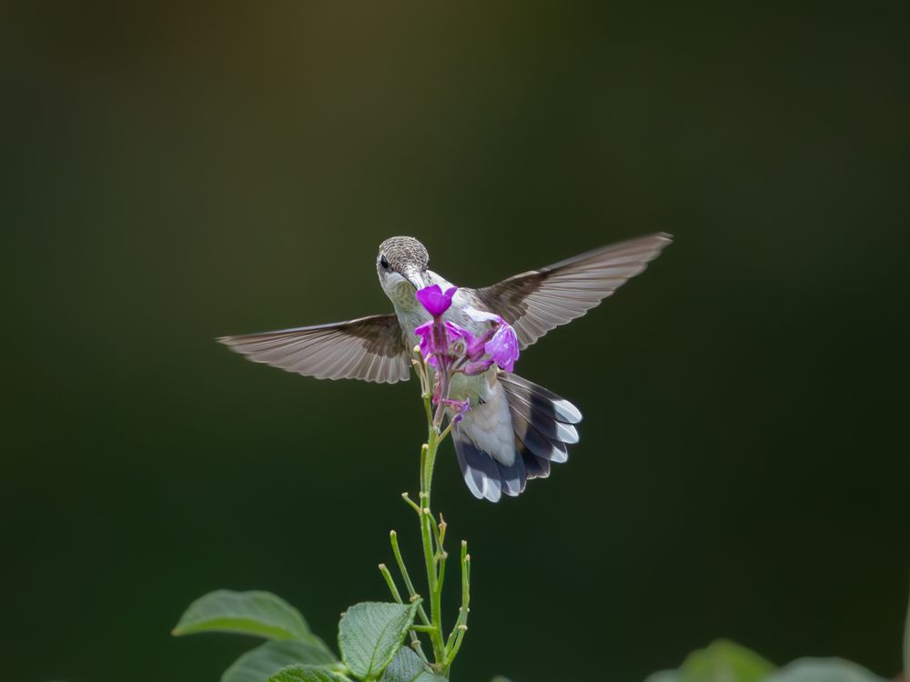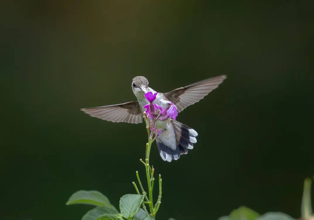 A young ruby-throated hummingbird forages on the last of the blooming fireweed along Maine's midcoast. This bird was one of the last hummingbirds to migrate through the area, and had more limited options for getting nectar than earlier in the season.