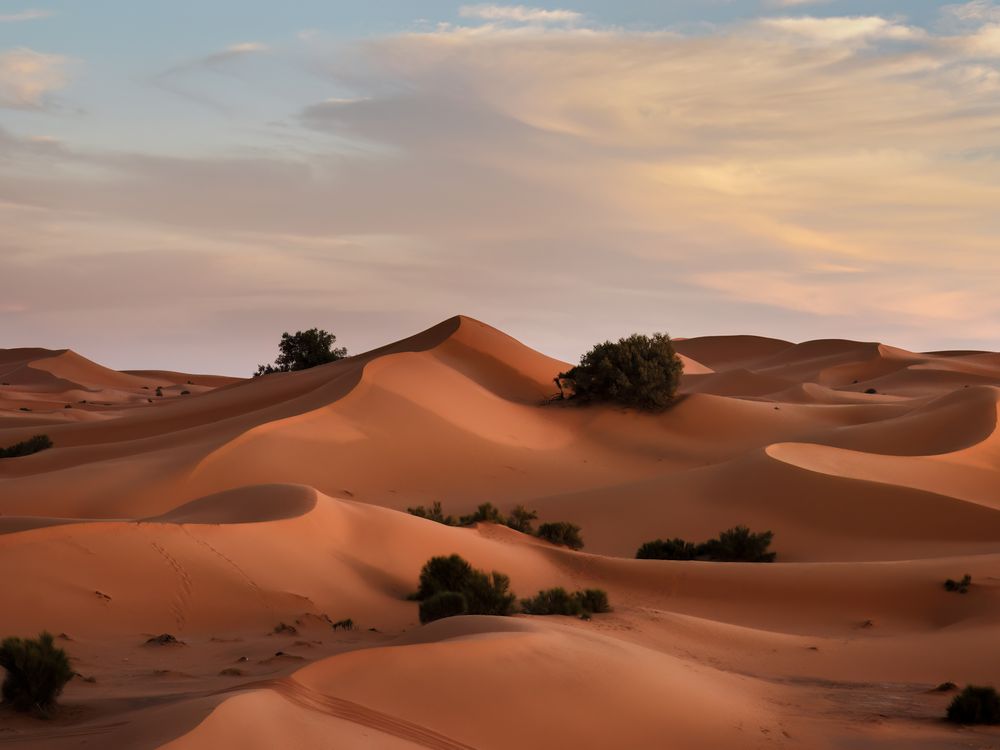 Dunes of the Sahara When the sun sets in the Sahara desert the lighting is absolutely mesmerizing. The sun creates pockets of light and dark on the dunes that seem to go on for miles.