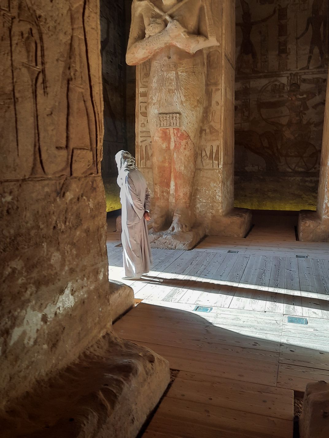photo prise lors de la visite du temple d'Abou Simbel ; j'ai été séduite par le contraste des dimensions entre l'homme et les colonnes