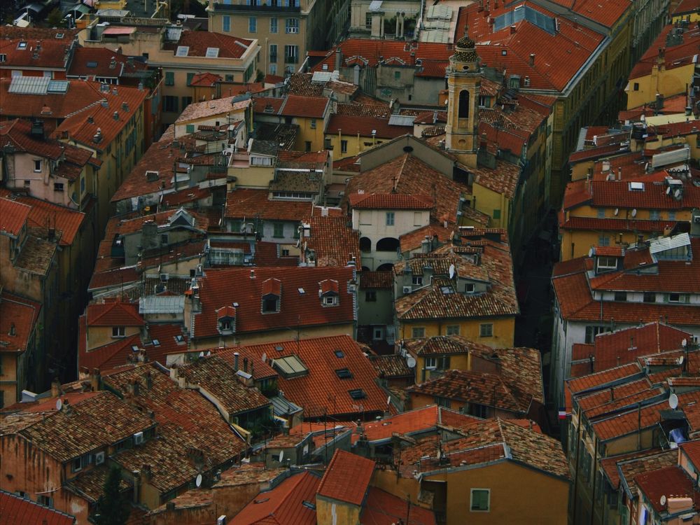 Photograph captured from the "Colline du Château" in Nice, this picture shows part of the city centre seen from above