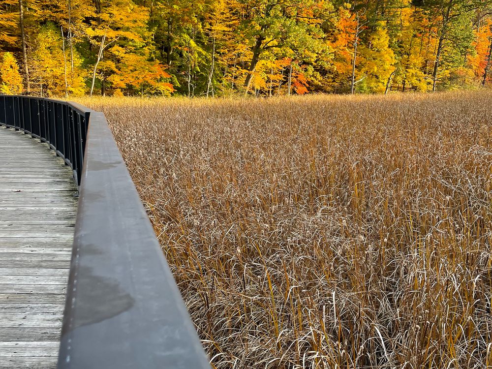 I took this shot on a perfect fall day in Durand Eastman Park. I was on a curved boardwalk through a marsh.