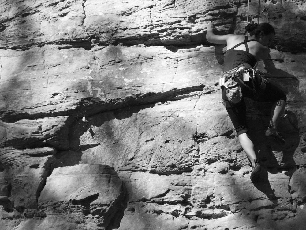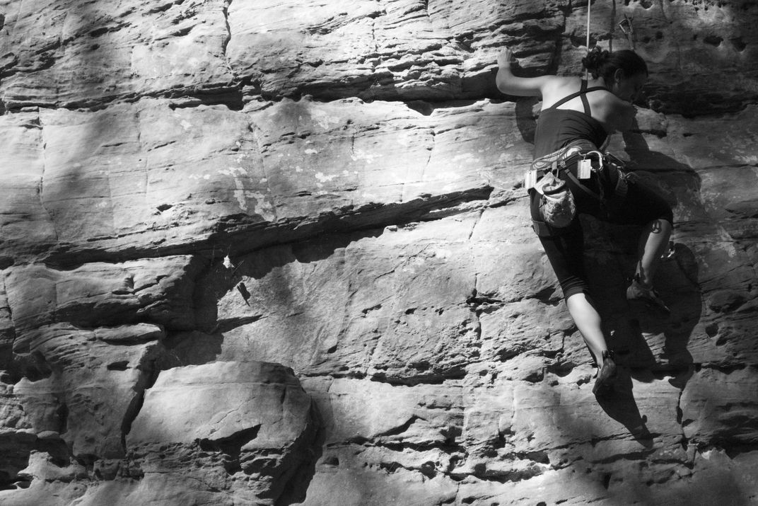 Leah follows up Return of Manimal, a slabby 5.10d on the Bruise Brothers Wall in Muir Valley.