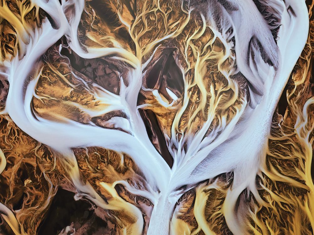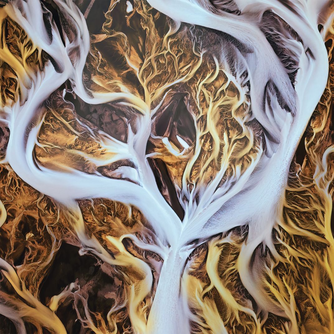 Intrigued by the "Tree of Life" series of Italian photographer Isabella Tabacchi, I wanted to photograph structures and, therefore, I studied online maps for hours ... and found this unbelievable valley. In June 2024 I could do the shooting - what an experience to fly the drone thru this valley, so unreal, almost supernatural. In a valley on the Icelandic Highlands water finds its way shaping the land into majestic forms, symbolizing resilience and interconnectedness. Rivulets, streams and brooks seemingly run over and under each other, crossing, parting and melting again, creating wonderful abstracts, that let your phantasy run.