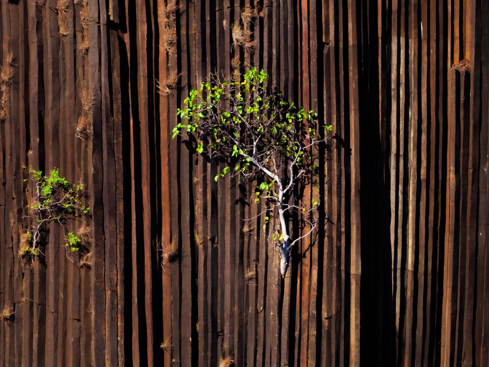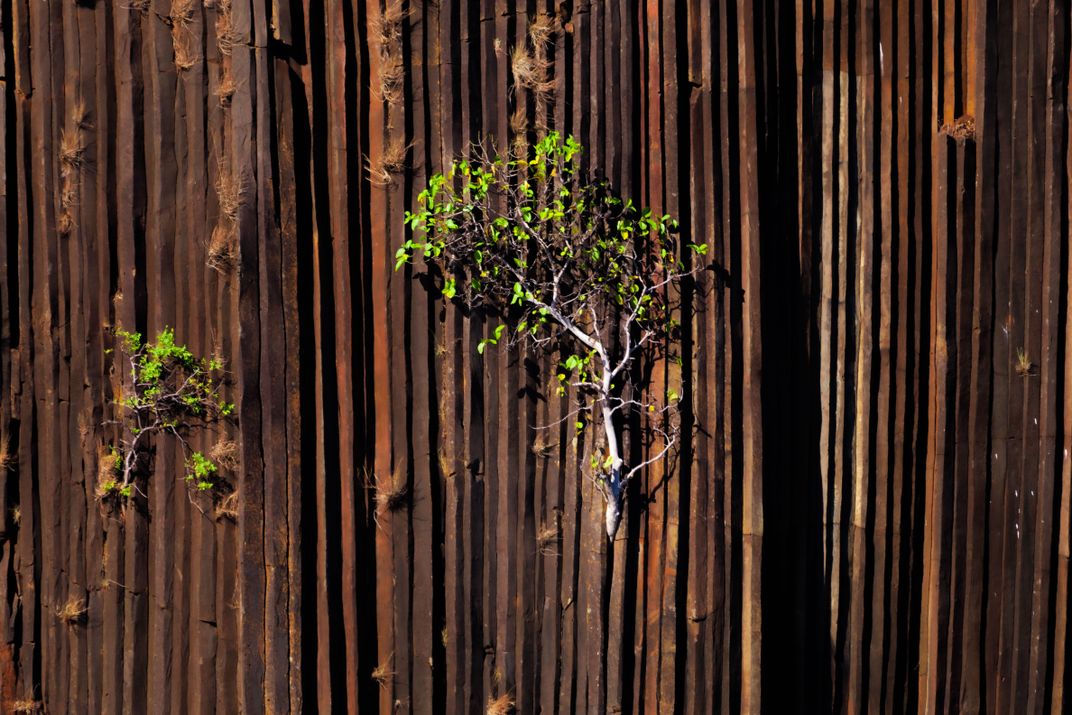 Vegetation clings to the columnar basalt cliffs of Nosy Mitsio, Madagascar. Formed by slow cooling lava, these towers offer rare footholds for plant life. I photographed them while documenting the Madagascar Research and Conservation Institute and training as a rescue diver.