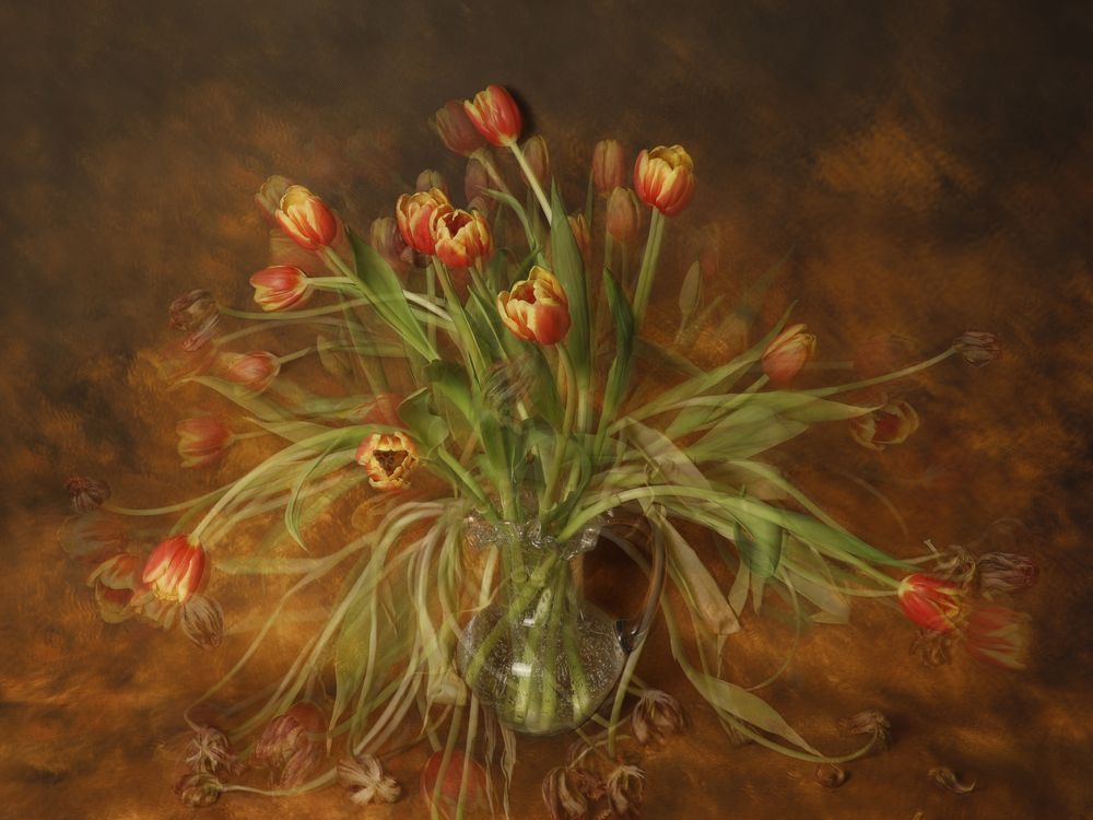 One flower, one blade of grass, one tree; one grain of sand, one speck of dust, one handful of earth — all things in this world continue in an endless cycle of life. I attempt to use flowers as a medium, exploring life and time through imagery. In this series, I photographed four kinds of flowers — sunflowers, helianthus, tulips, and lilies — documenting their entire journey from full bloom to withering, over a period of 65 days. I then digitally recomposed images from different stages, condensing more than sixty captured moments into four photographic works, each representing the life cycle of one flower. The visuals present a hazy beauty, radiating warm, classical romantic tones and poetic aesthetics. More importantly, they evoke reflection on life and the passage of time. This creative approach is also an exploration of innovative floral photography.