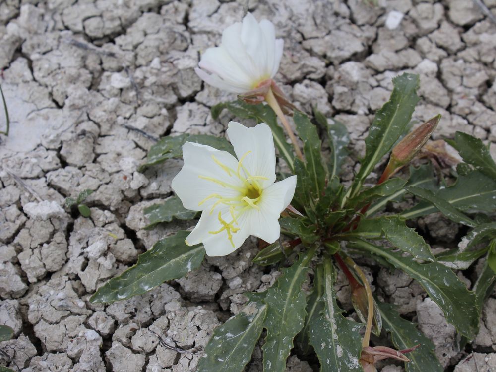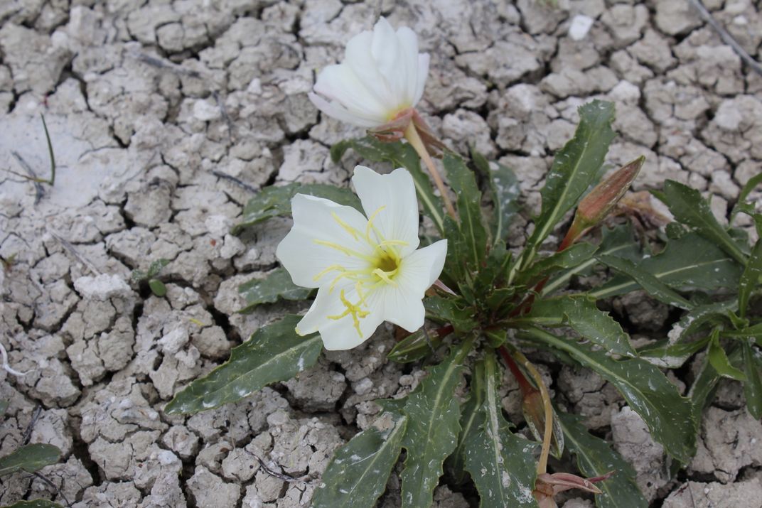 We were hiking through the wilderness in the Badlands, and we came across these beautiful flowers growing in the cracked earth.