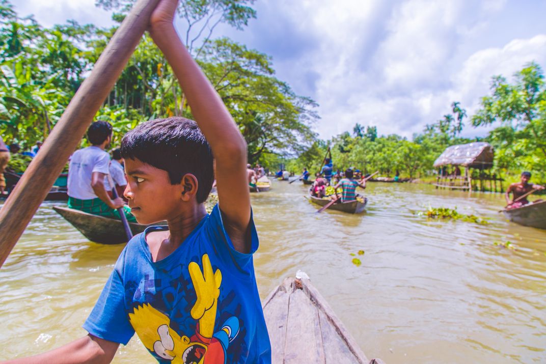 Aatghor, Kuriana is a very remote place in Barishal, Bangladesh. Boat is the only way of transportation. Farmers grow guava and other fruits in the rainy season. Middlemen come to this river and buy from them. There is no electricity. Schooling is available only up to class 5. Every day is a challenge for people living in there