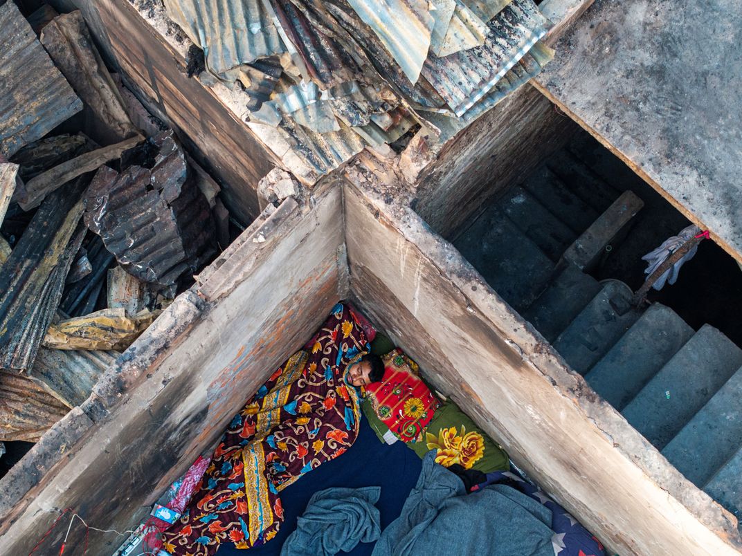 In the aftermath of the Korail fire, amidst the rubble and loss, a person finds sleep. Here peoples journey is tough, but their will to survive remains strong, proving that even in adversity, they find moments of peace.