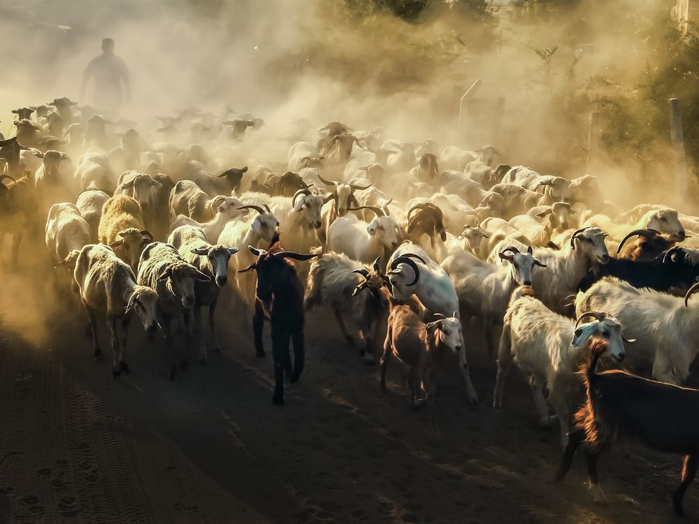 A man trying to raise his lambs, The difficult process and the struggle to survive on dusty roads.