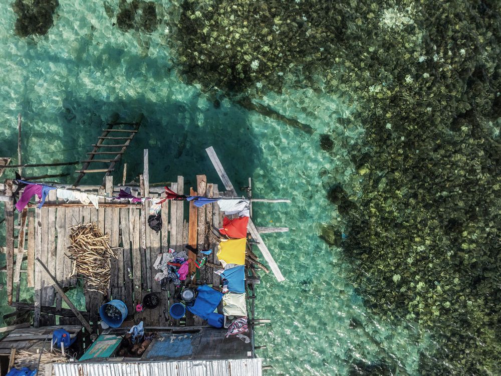 Hovering above crystal waters, this stilted wooden home reflects the resourceful architecture of Malaysia’s sea nomads. Built from reclaimed wood, it blends necessity with tradition in harmony with the ocean.