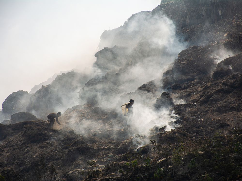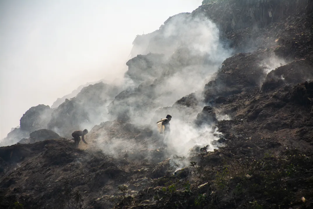 Two young child laborer working amidst the vast garbage dump in Halisahar, Chittagong, Bangladesh. Many homeless people have lost their homes and properties due to frequent floods, river erosion, and other natural calamities. These homeless children are one of them. But at the age of going to school with a school bag on their shoulder, life got involved in the battle for livelihood. They were forced to resettle to the city in search of a better destiny. In this pollution-prone area near the city's waste dumping site, children toil tirelessly for meager wages. The image captures a poignant scene of these two young workers collecting recyclable materials from the towering heaps of garbage. With determination etched on their faces, they navigate through the debris, contributing to their families' income. enduring not only the physical challenges but also the severe health risks posed by their hazardous environment .