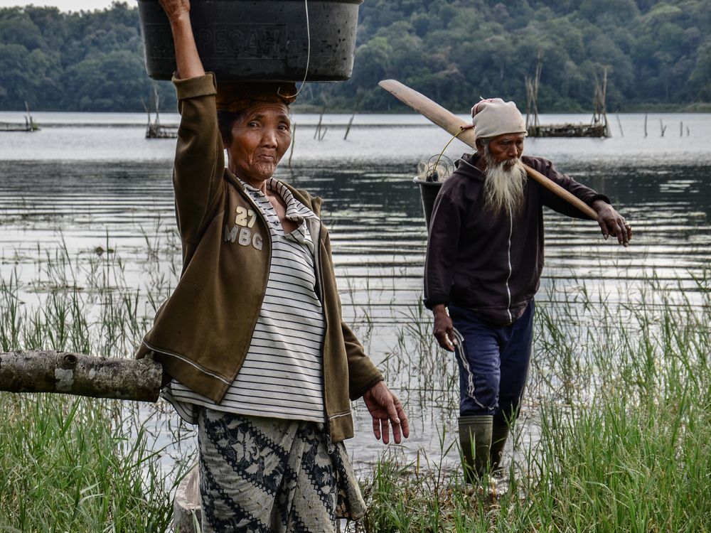 A very inspiring scene that early morning in the sacred Lake Tamblingan, old folks in their lifetime bonding. The woman welcomed her husband from a fishing chore in the lake and would willingly carry on her head the nets and whatever catch there was. This was taken during my visit in Bali, Indonesia.