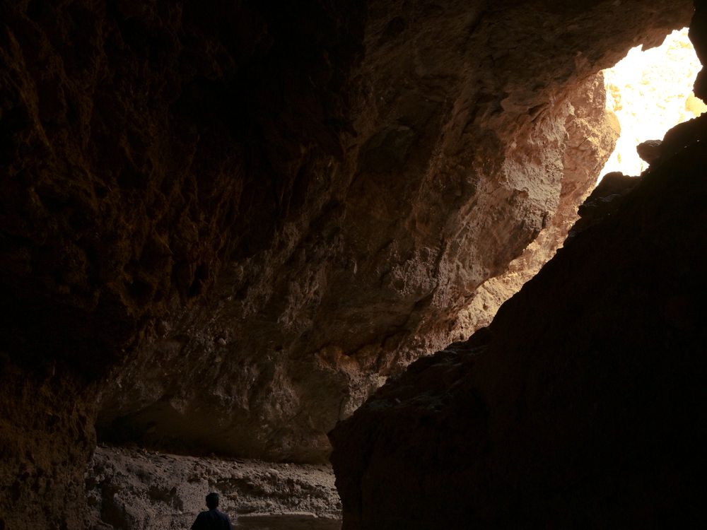 In the caves near Garmsar, a lone figure steps toward the light — a quiet moment that blurs the line between shadow and revelation. The natural textures and soft glow evoke the timeless pull of exploration and hope.
