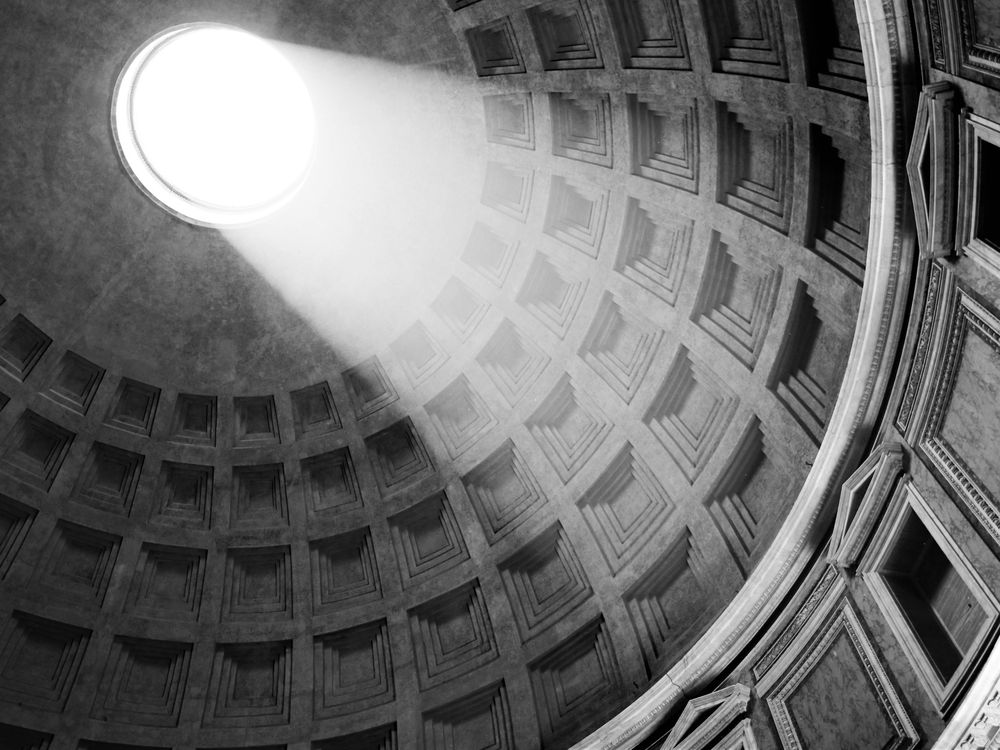 While visiting the Pantheon in Rome, the light poured through the opening in the center creating an intense beam to highlight the architectural elements of the structure.