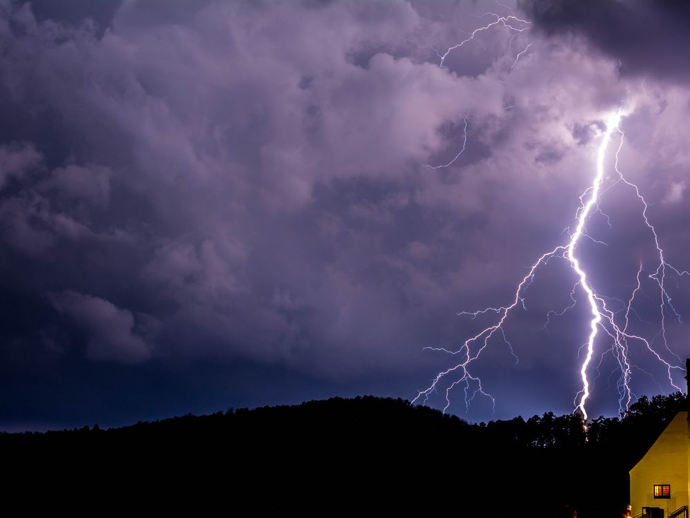 After an hour of attempts, I finally got this lightning shot. I waited and waited as the storm got closer and by the time it was close enough to scare me to death. I snapped this shot and got the heck out.