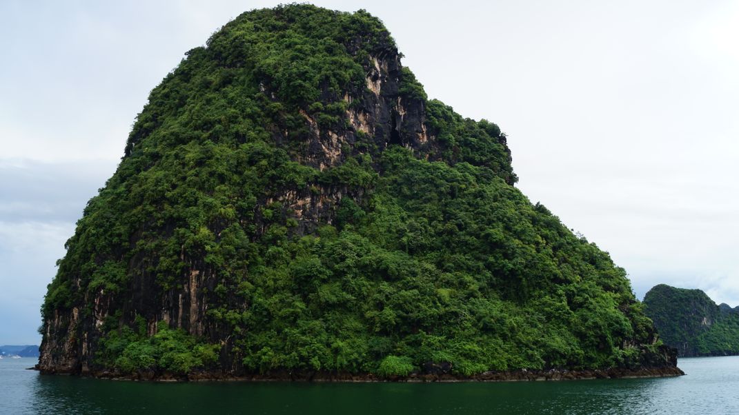 This a beautiful towering Limestone island at Halong Bay, Vietnam. This picture was taken while on a short cruise to the bay, exploring the various limestone island and the small caves.