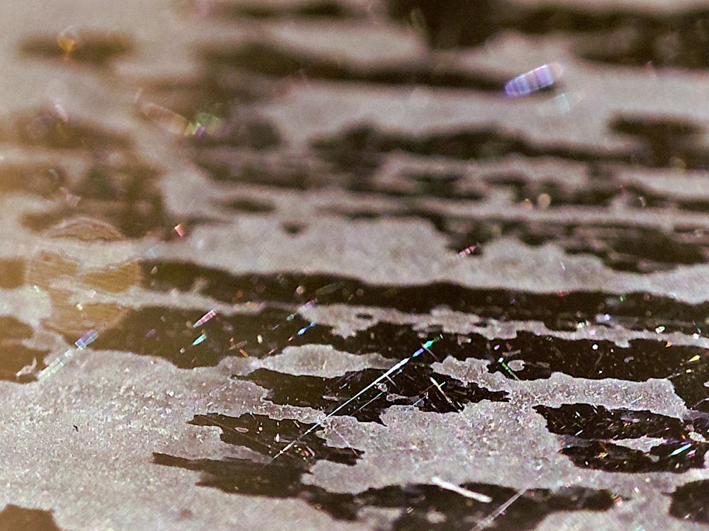 This is a macro photo of metal that I found inside my house. Light plays on this surface which creates a variety of visual effects.