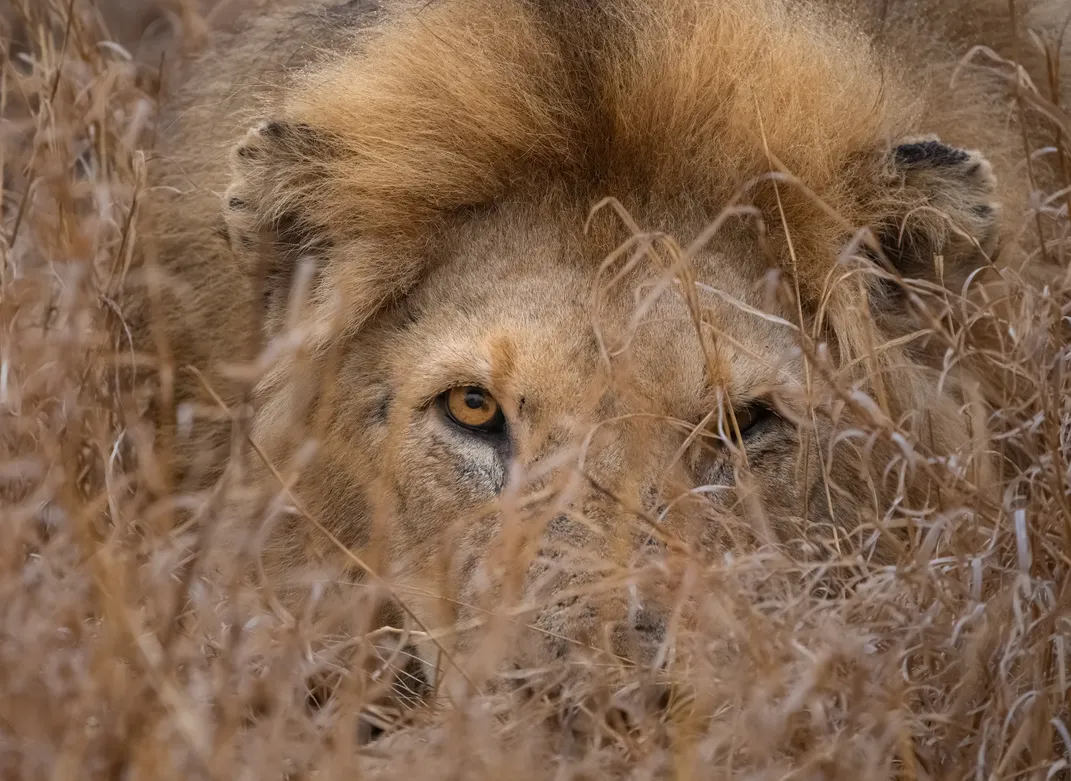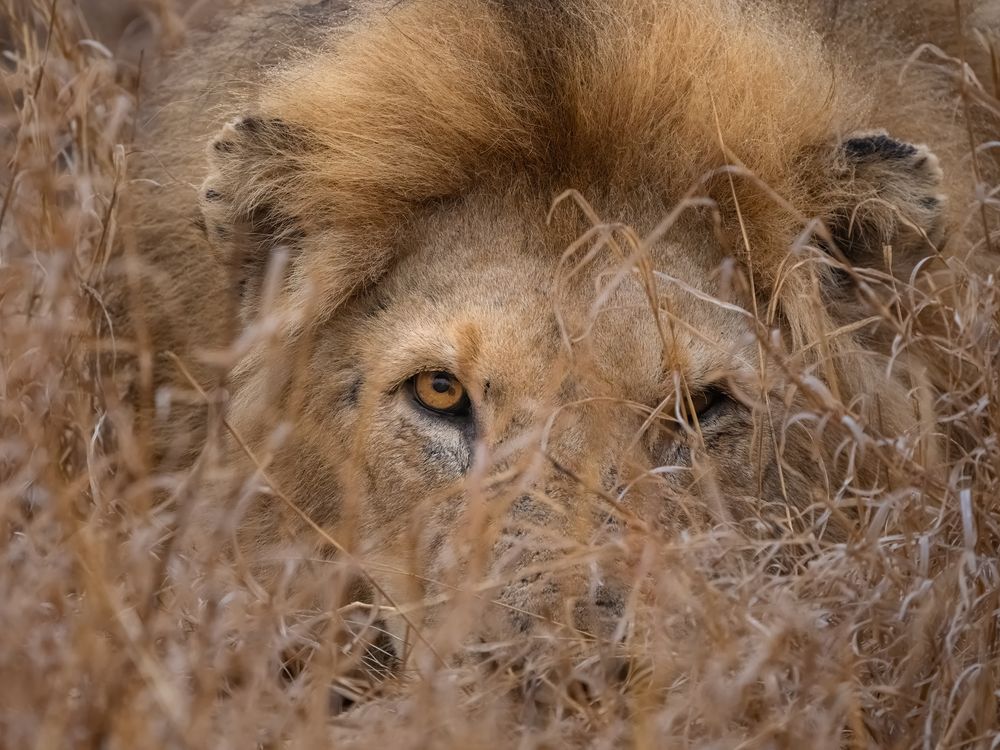 During one of my morning game drives I came across a male lion lying in the grass. He used the grass next to the road as cover to try and hide from my vehicle. So, I decided to try and capture an image to reflect a lion in a typical Africa environment.