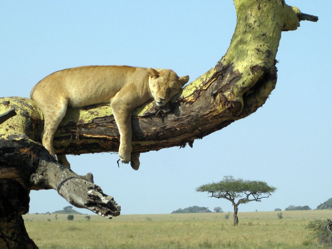 Lion resting in a tree in the Serengeti