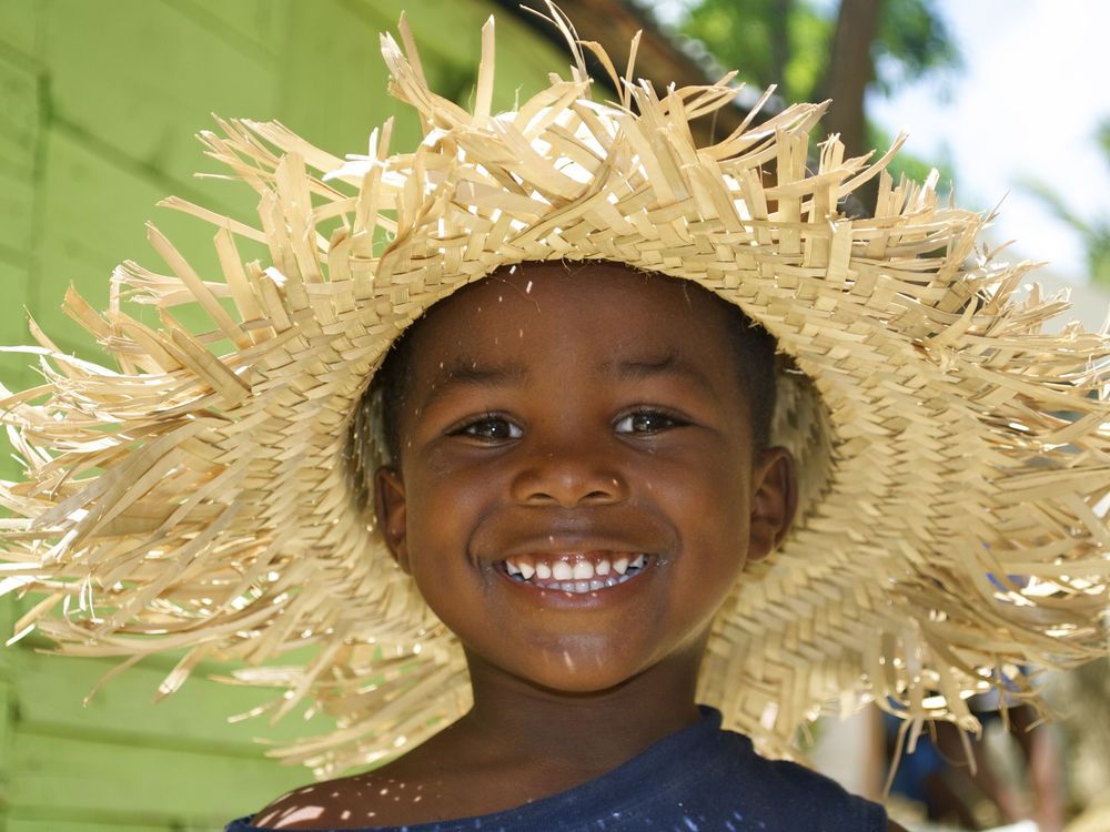 Little Dominican boy "Charlie" wearing straw hat to keep the sun out of his eyes!