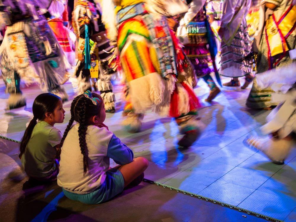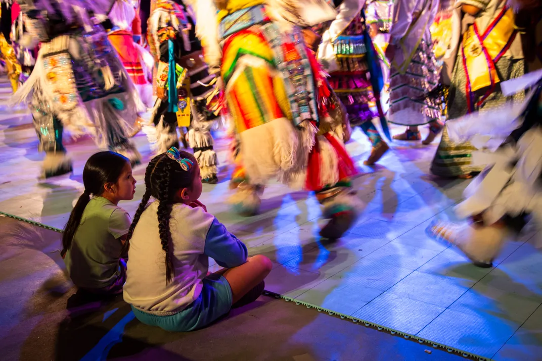 Little Girls Watch the Powwow's Grand Entry