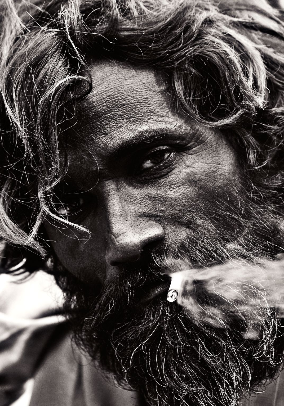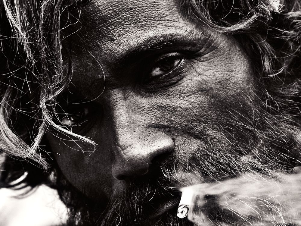 The picture was taken at Varanasi (India), a place of religious importance for Hindus. The man in the picture is one of the many beggars who make their living on alms given by people. many a times, a handful of them land up becoming addicts. The picture is the presentation of his attitude of indifference towards the world and shows how lost he is in his own world.