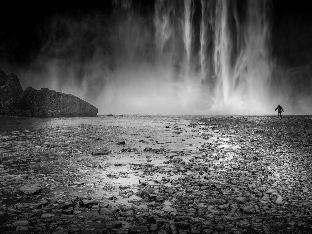 Lone Man and Waterfall