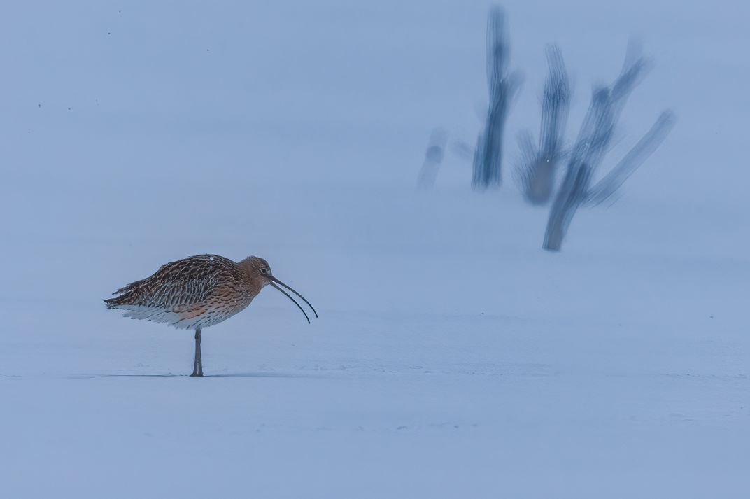 This was my first curlew I met in that spring. It used to stand long periods on snow.