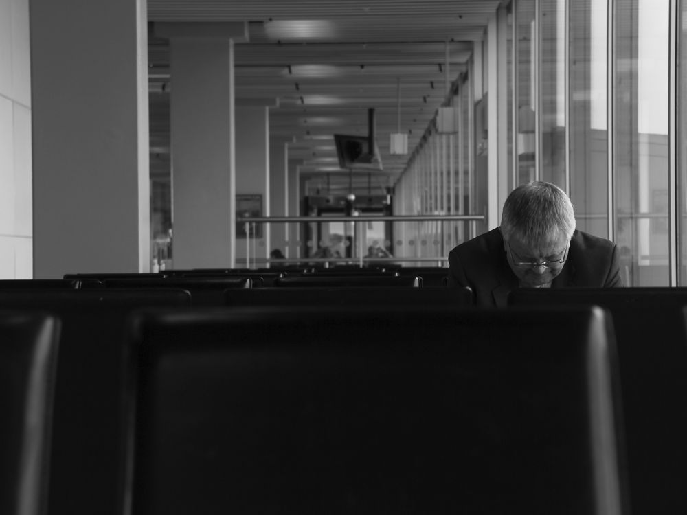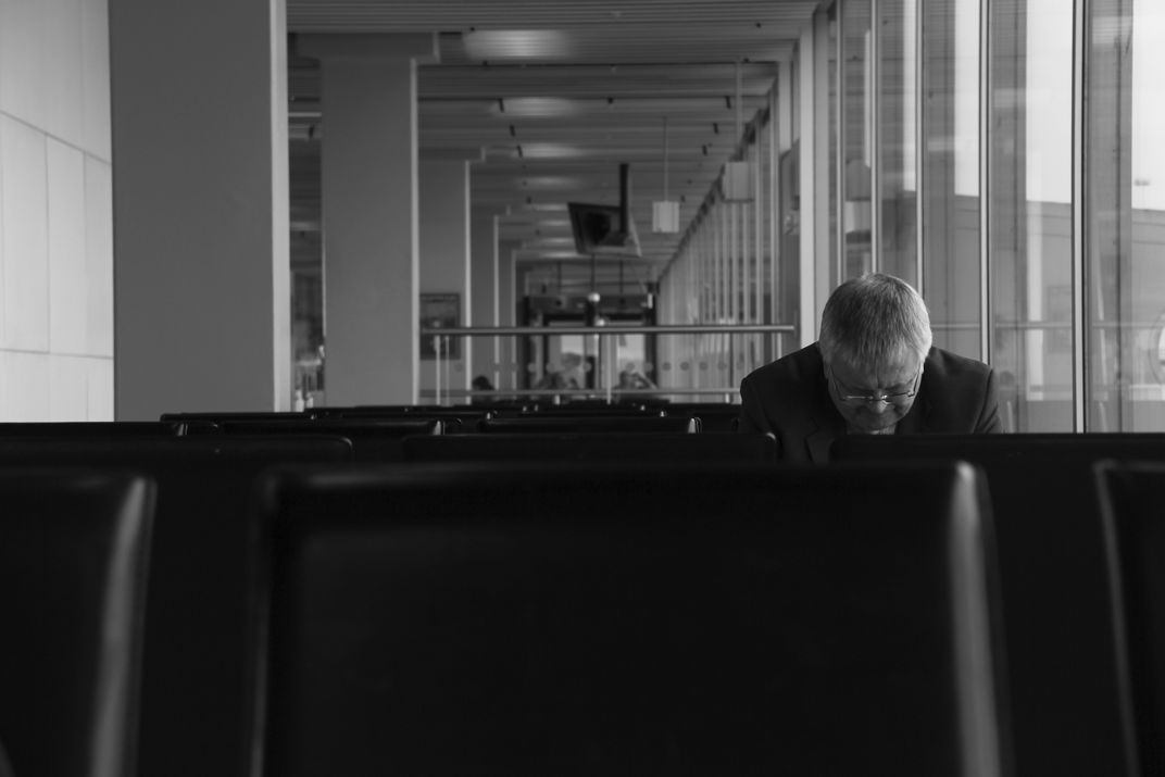 My family and I were waiting for the plane arrive at Amsterdam Airport along with a few more passengers resting in the chairs.
