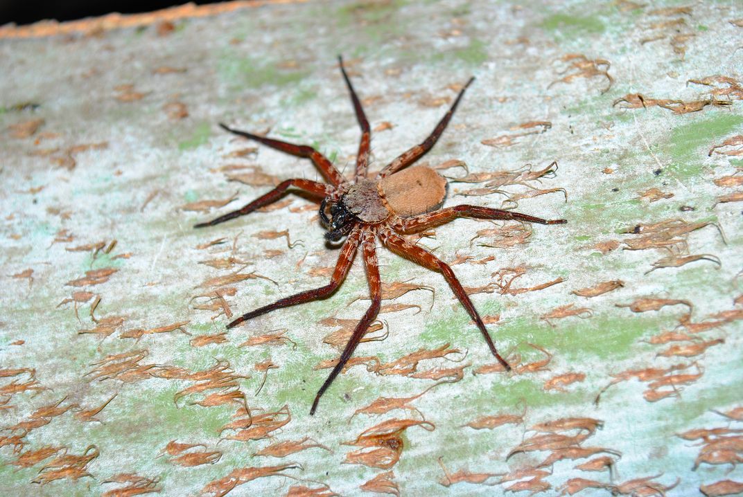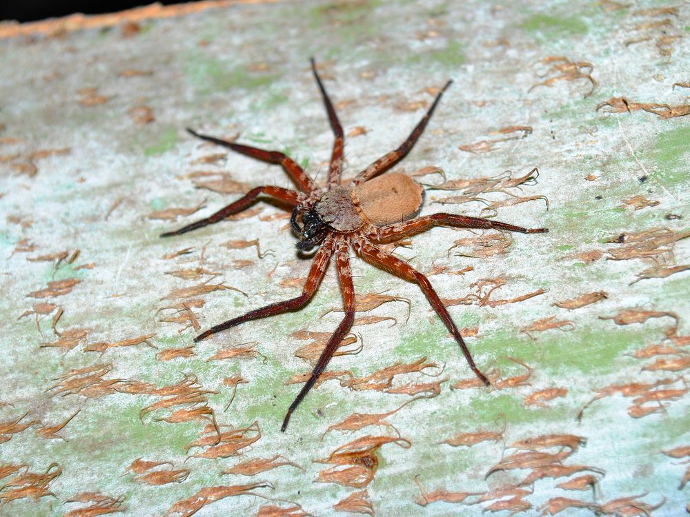 The photo is showing a female Selenops lindborgi spider on a Bismarckia nobilis palm. This is one of the Selenops species that we usually find inside houses here in Puerto Rico.