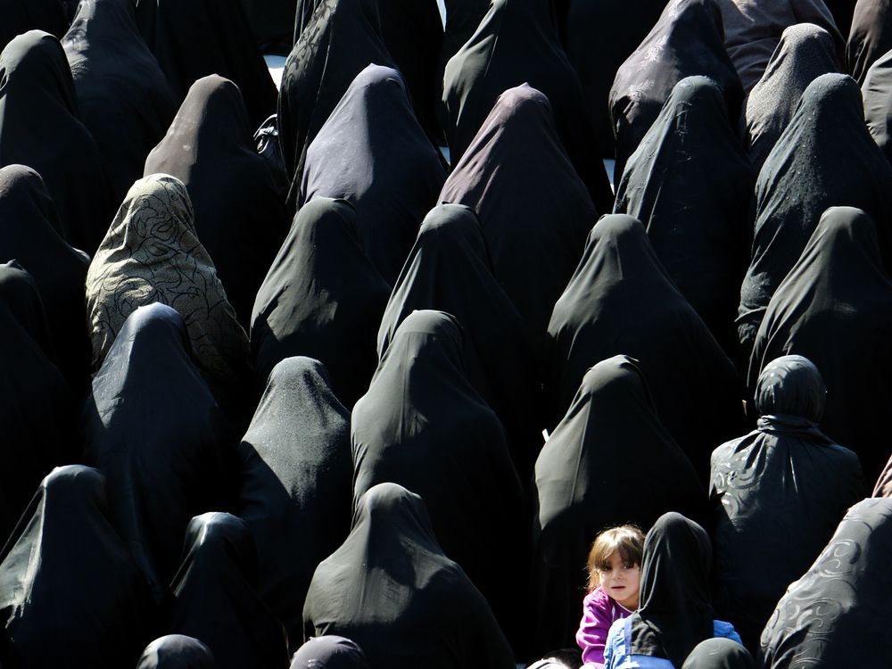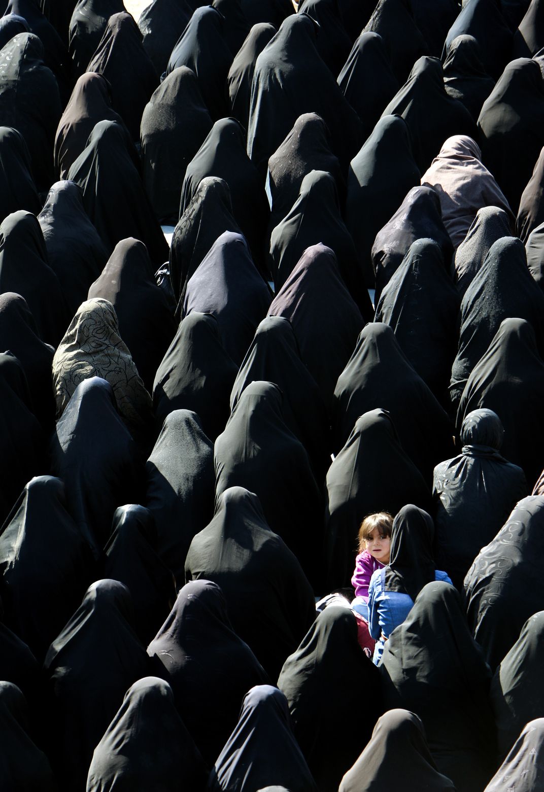 The child's gaze among the crowd of women
