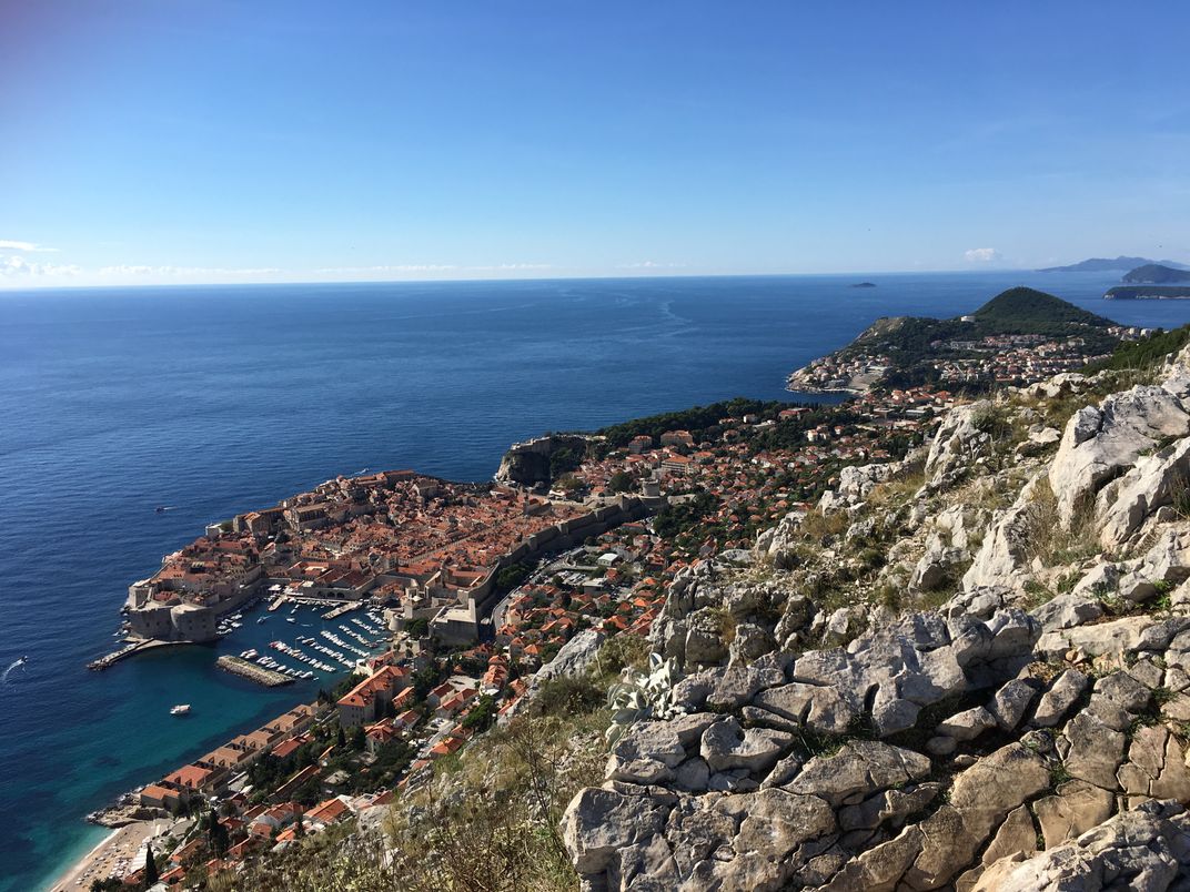 This photo captures an early fall afternoon while standing on a rocky hill overlooking the Dalmatian Coast of Dubrovnik, Croatia.