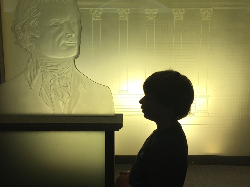 My son paying respects to one of our nations Founding Fathers.