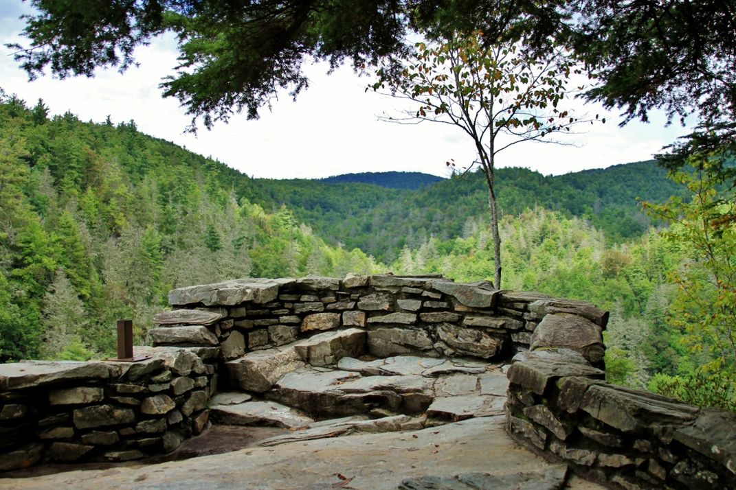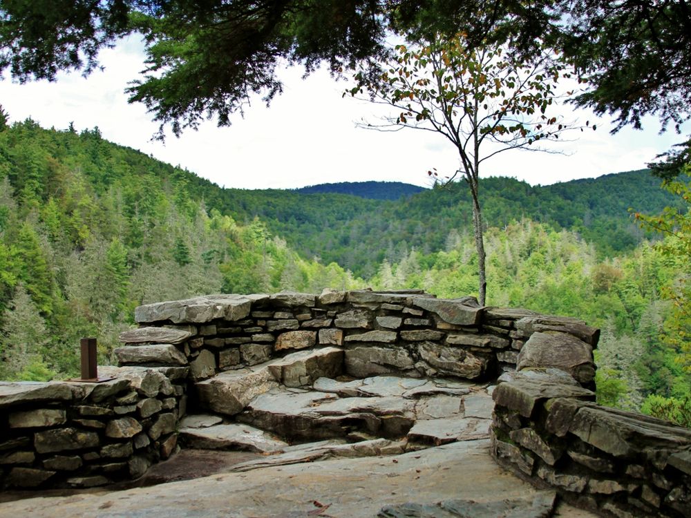 "Lookout" Linville Falls has many lookouts that makes you feel like your on top of the world. This is one of the great rock forms that you can climb to to lookout.