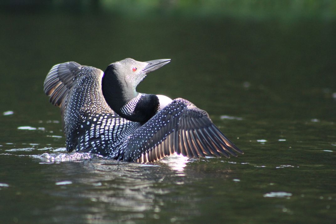 A loon shows off its wingspan on Nick's Lake at Nicks Lake Campground in Old Forge, New York.