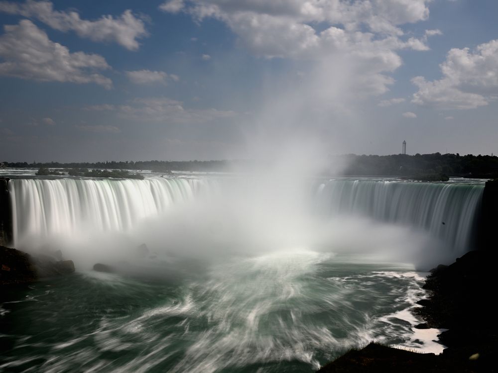 While visiting family near Niagara Falls, we sometimes walk across the Rainbow Bridge to enjoy the view from the Canadian side. On this particular day, our sole purpose was to capture long-exposure photos, so I packed my tripod in my backpack. When we arrived in Niagara Falls, Canada, there were no lines at customs, a clear sign that tourism was down. With so few visitors around, it was easy to set up my tripod right on the sidewalk without worrying about it becoming a tripping hazard.