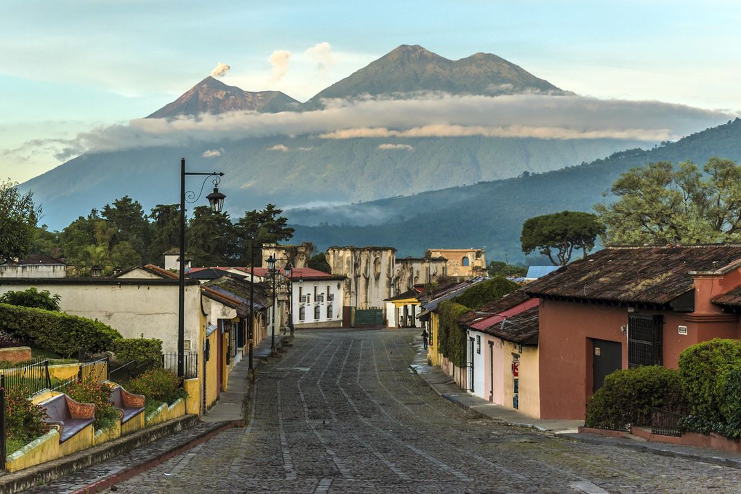 Can someone fall in love at first sight with a city, like with a person? For sure yes. The City of Antigua Guatemala is a clear example of that. In the photograph, you can see the entrance to said city, so this is the first view that anyone who visits has before their eyes. In the foreground, you can see the beautiful colonial architecture, the color and the cobblestone streets of the World Heritage City. In the background, from left to right, the imposing Fuego and Acatenango volcanoes, the first of these with a small fumarole given its eruptive activity.