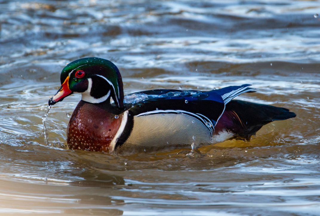 A male wood duck, normally elusive, became obsessed with a female mallard at the local park. He followed her everywhere, providing the local photographers the chance of a lifetime. When her mallard mate would approach, the wood duck even chased him off. He was so smitten with her (and we were smitten with him)!