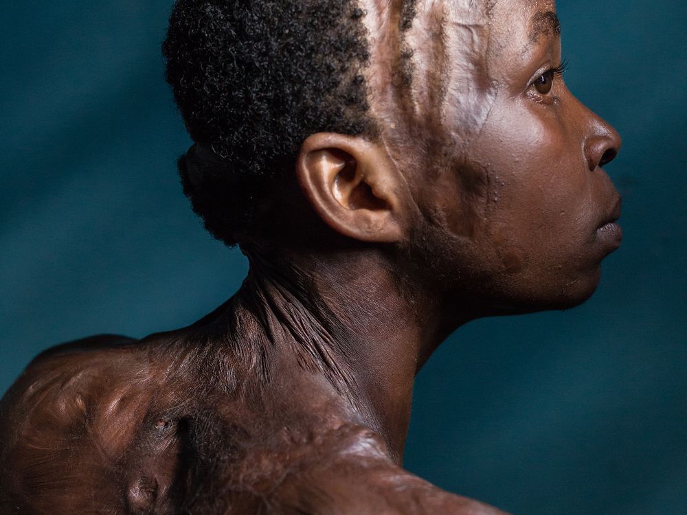 Uganda, 2025. Lynette, 27, was attacked with acid when she was three. One evening, she and her sisters were gathered in the house, sitting on the carpet for dinner. Two masked men came through the door throwing some buckets full of acid at the group of women who got up by clicking leaving only Lynette on the floor, too small to move quickly. The main suspects of the attack fell on Lynette’s stepmother, who seems to have harbored a grudge against her daughters and wanted to eliminate them. Soon after the attack she was arrested, but managed to bribe the guards and remained in jail for a little while and has since disappeared. The acid caused Lynette to have severe head, neck and back injuries. She was hospitalized for three years and underwent numerous surgeries. But the pain, especially the psychological one, has never healed. Growing up, she married a man who, after always having despised and humiliated her, abandoned her with two children of eight and six years. Lynette lives in a small village in the arid central part of Uganda: she has never met anyone in her condition and for years believed she was the only one to have suffered such brutal violence.