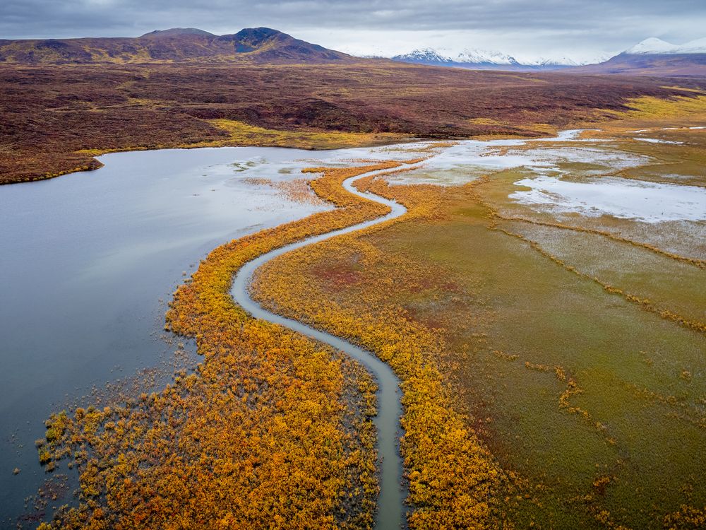 Autumn is a beautiful time to visit Alaska. Its huge lands turn into orange-tuned color palette. Maclaren river is accessible through Denali Highway. It is great place for outdoor activities. From there you can see Alaska Range.