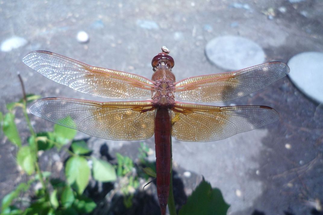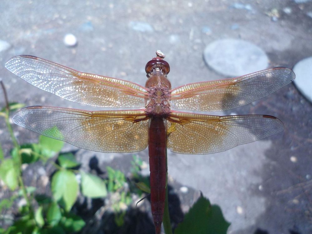 outside grandparents house after grandfather died i do not believe in reincarnation however this creature seemed to pose for me and when i was leaving the house to be on my own for the 1st time this dragon fly was almost telling me it will be ok