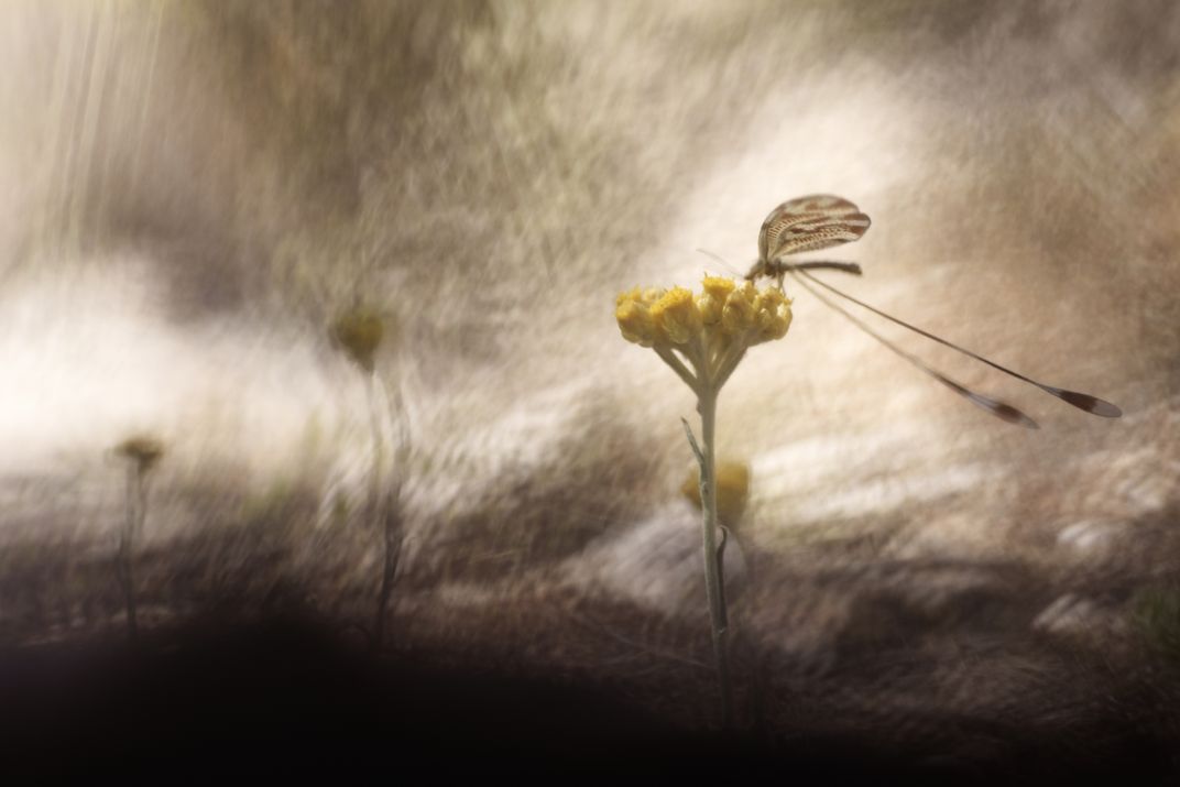 An impressionistic style photo of a Nemoptera coa on Helichrysum. I wanted to capture the fleeting feeling I got when this insect landed on the flower, which is why I chose this approach for my frame.