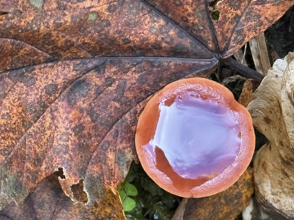 While searching for interesting mushroom examples for my sister’s elementary school class, I found this tiny mushroom. Recent rain had created a pool of water allowing the sky to be reflected.