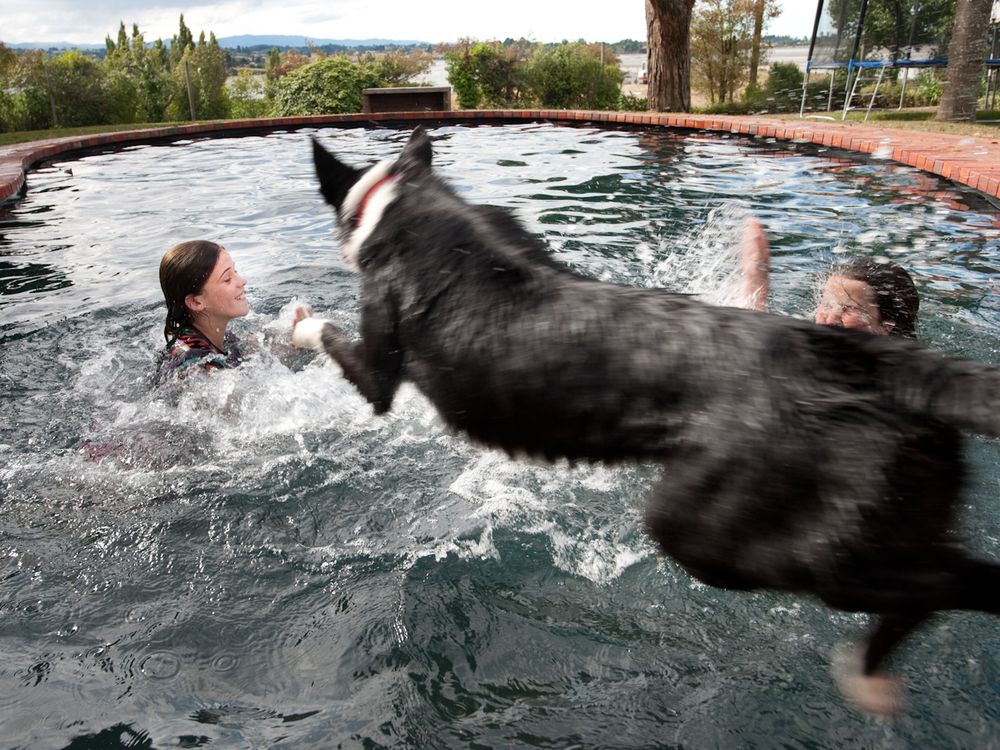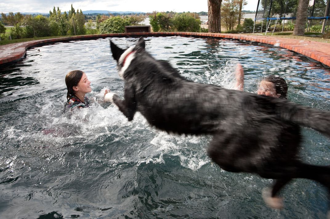 Maia, part of my host family, and her friend Keegan enjoy summer in New Zealand. Bella, the you sheep dog wants in on the fun.
