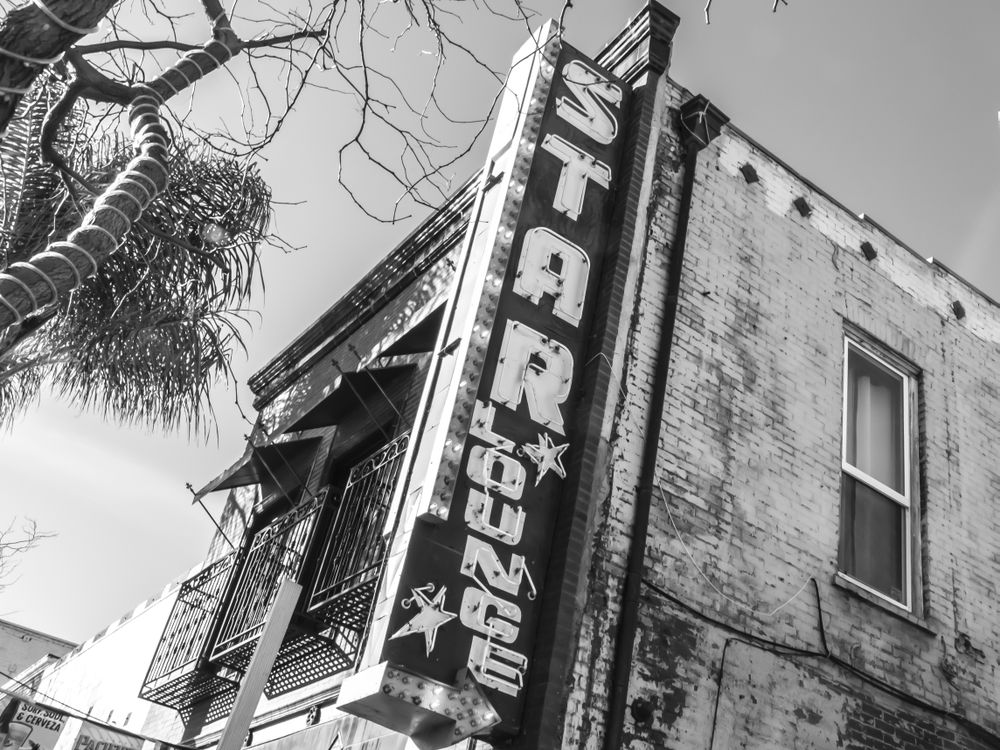 Restaurant sign on a beautiful old brick building.