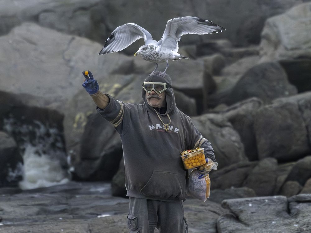 Dedication. This gentleman feeds gulls on the southern Maine coast daily. Sometimes 2-3 times per day. Regardless of weather. On this fall day, it was a chilly 38 degrees F with a light wind. Regardless, he persisted with his task - to feed the gulls...and it was impressive.