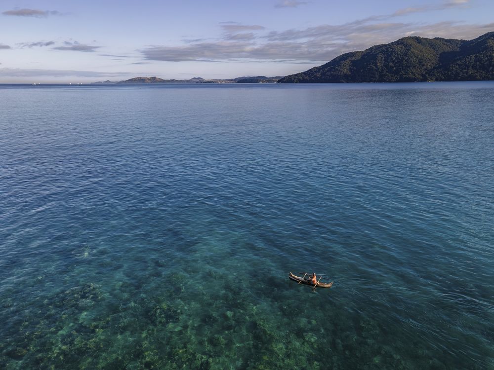 On an island near Nosy Be, we stayed for days without electricity. When this pirogue drifted over the reef, I used one of my few drone batteries, managing every charge carefully to keep equipment running in the isolated setting.