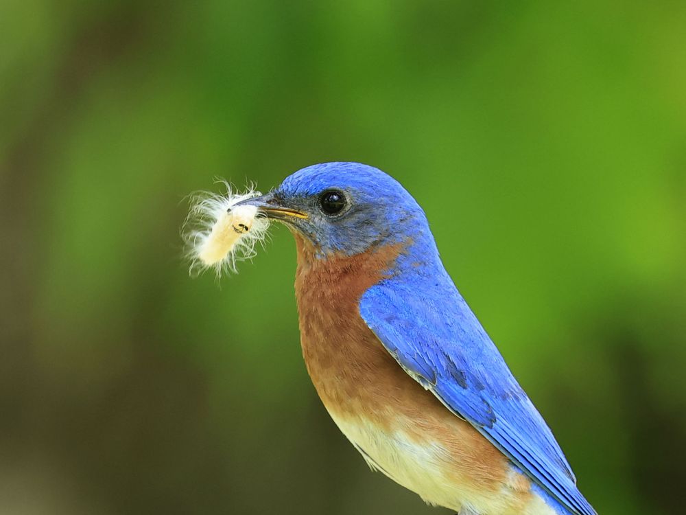 A male Eastern Bluebird hunting for bugs, and working hard to feed his young family in our backyard in Florida.
